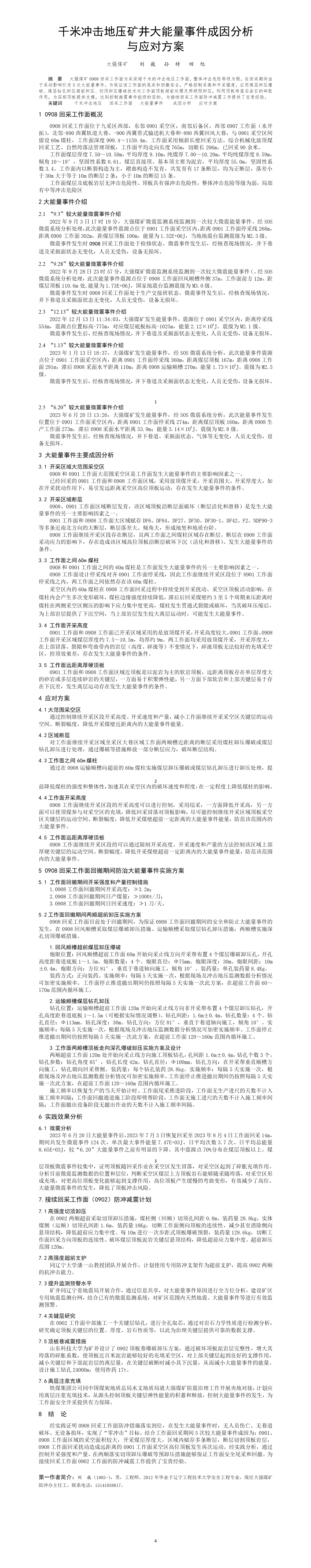 第61屆等級(jí)獎(jiǎng)?wù)撐?-千米沖擊地壓礦井大能量事件因素分析與應(yīng)對(duì)方案