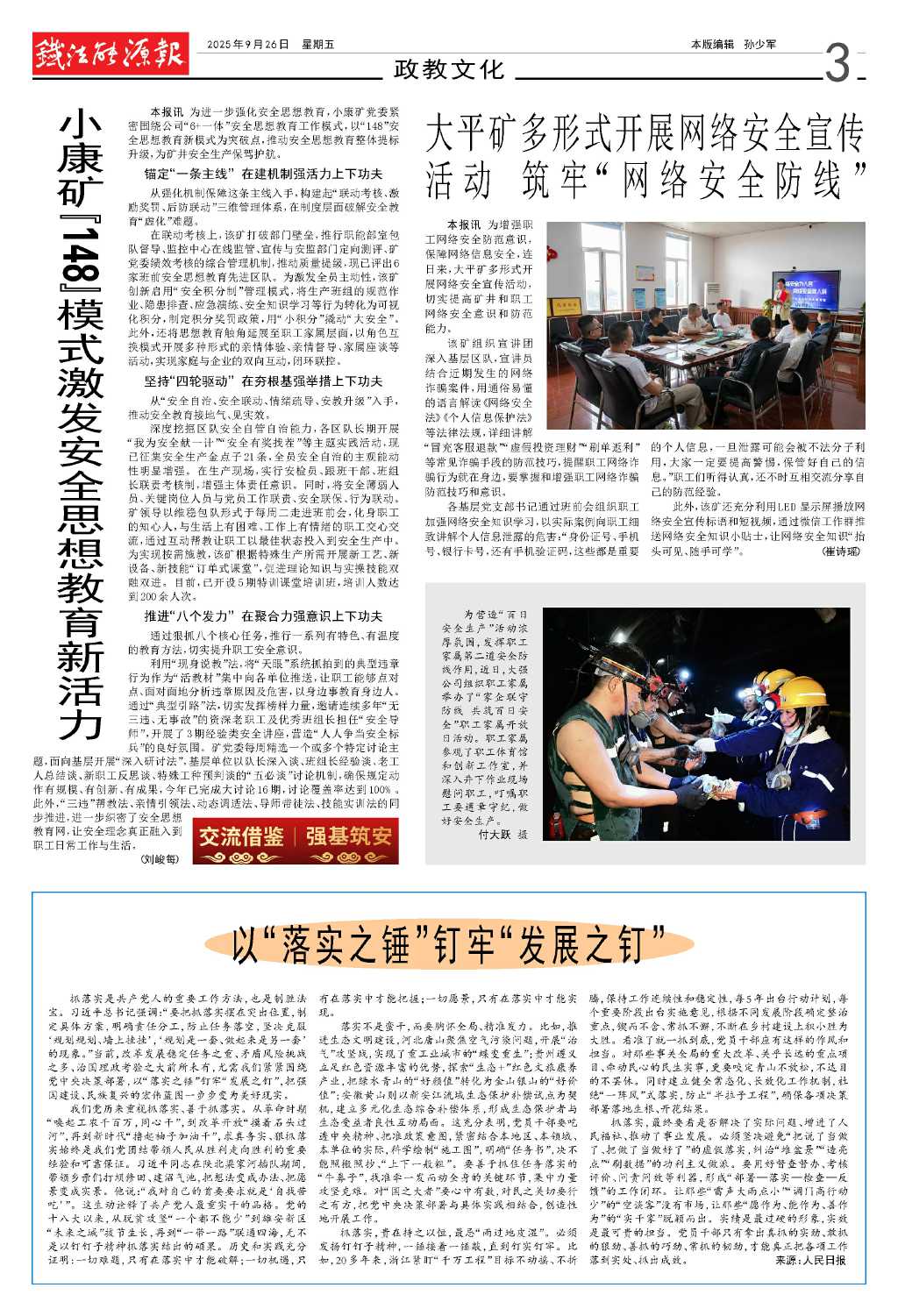 小康礦“148”模式激發(fā)安全思想教育…