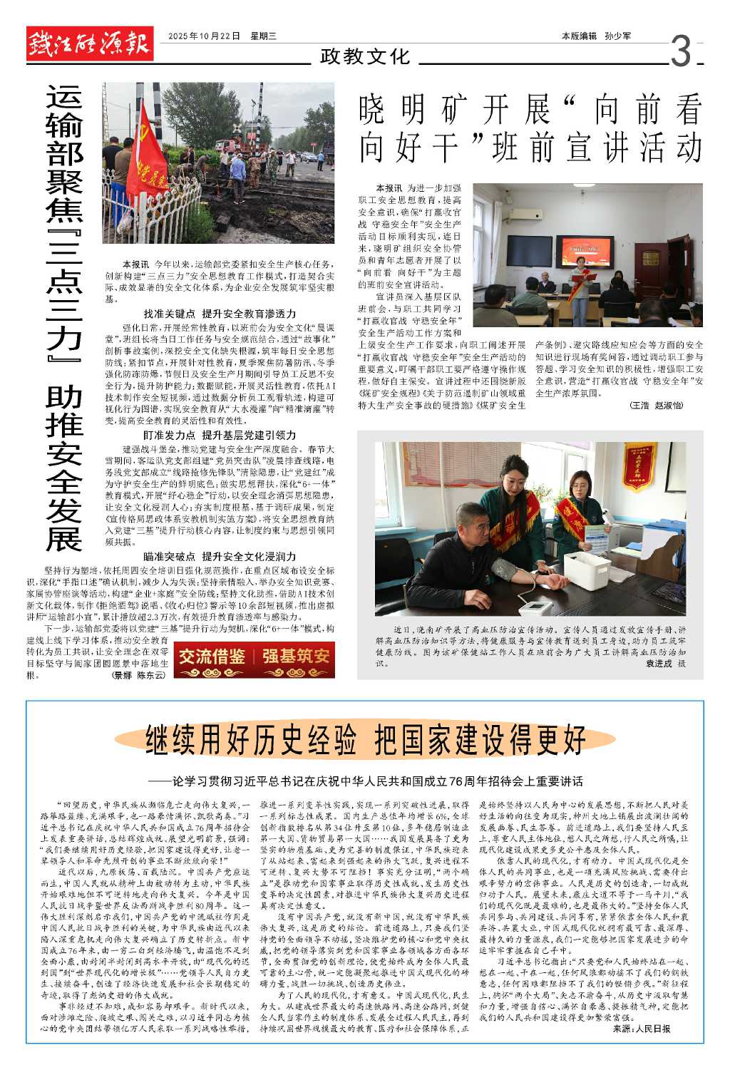 運(yùn)輸部聚焦“三點(diǎn)三力” 助推安全發(fā)展